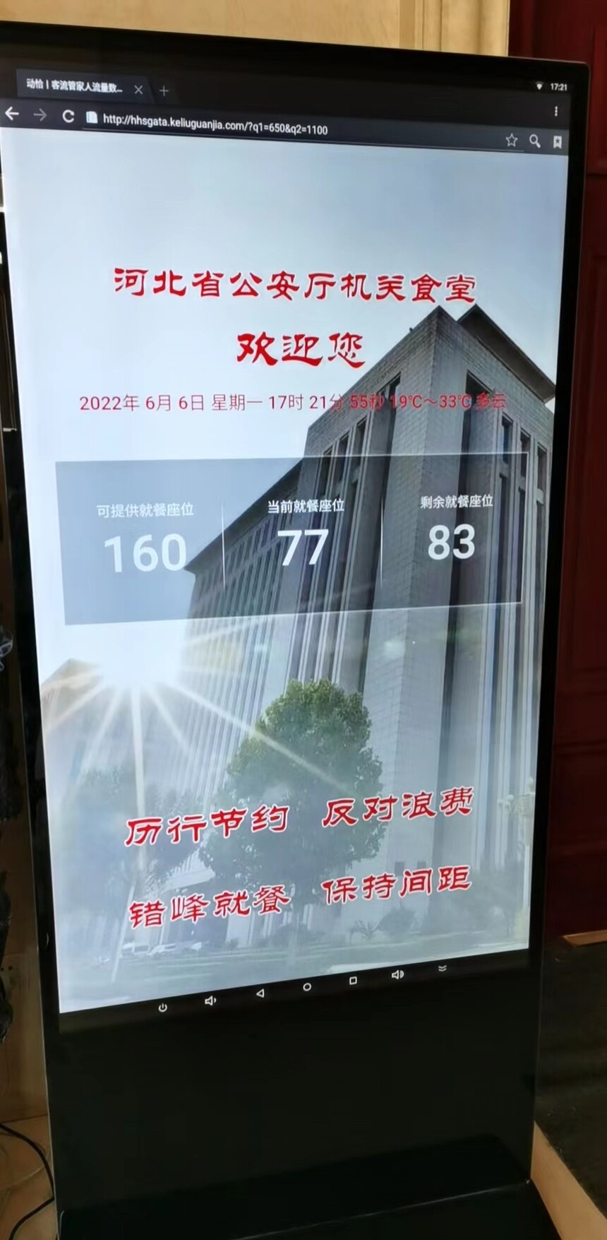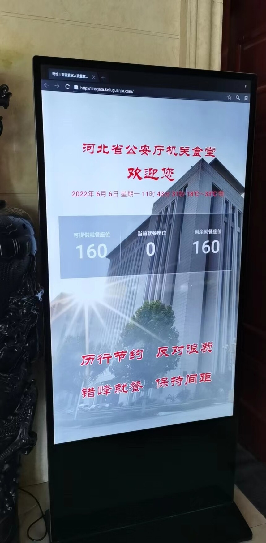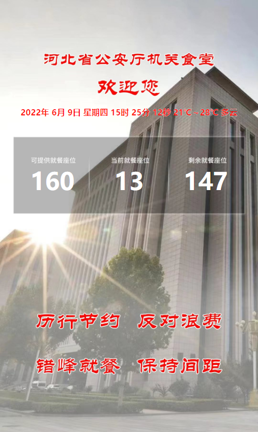 除此之外,河北省公安食堂还另外增设了大屏系统 大屏功能介绍: A、自定义主标题 B、自定义副标题 C、自定义北京设置 D、自定义数据源和排列 E、自定义滚动公告 F、一键发布生成投屏数显展示 G、不限发布次数,随时想改就改 H、配套系统数据修正功能更,可以联动修改总数据